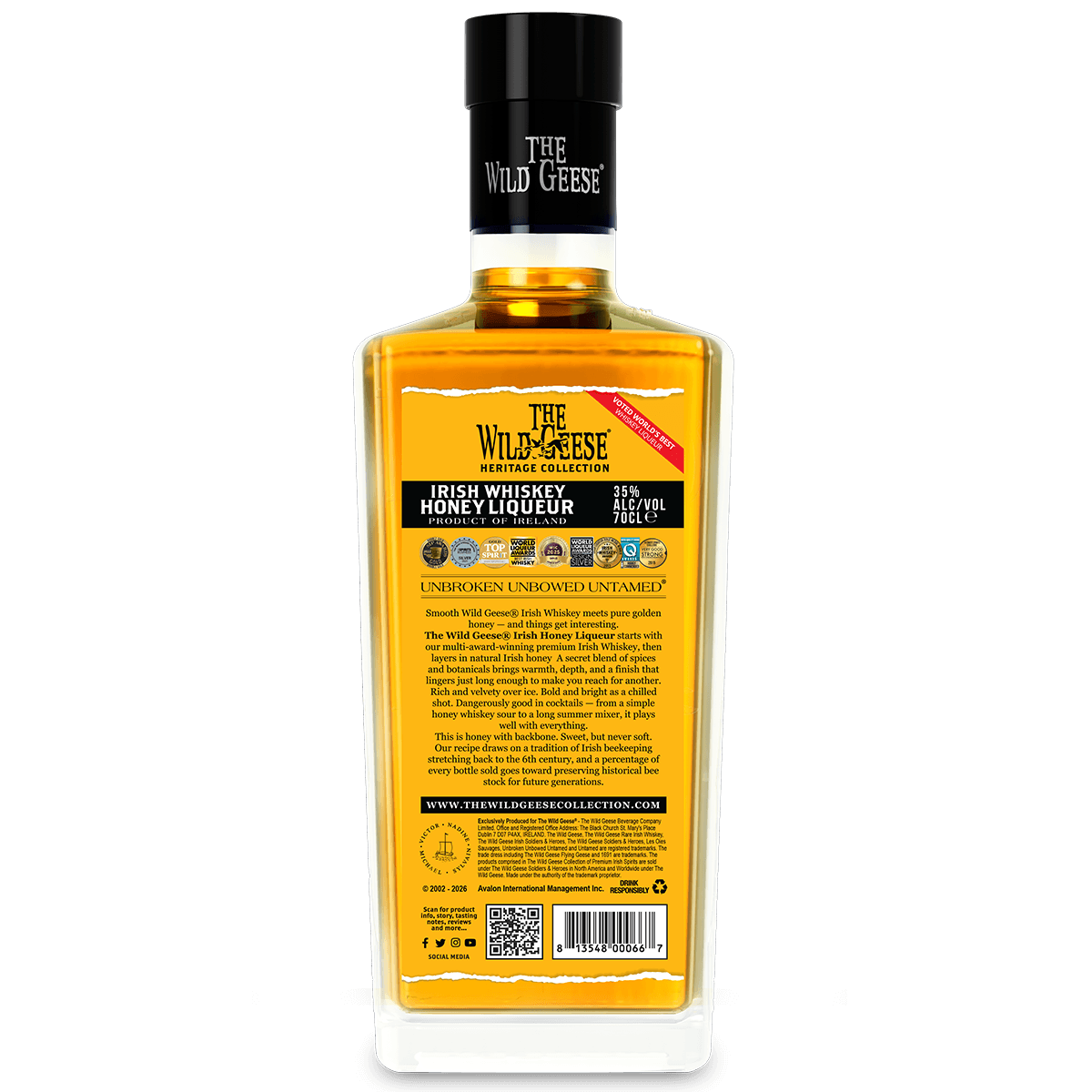 The Wild Geese® Irish Honey Liqueur starts with our multi-award-winning premium Irish Whiskey, then layers in natural Irish honey A secret blend of spices and botanicals brings warmth, depth, and a finish that lingers just long enough to make you reach for another.